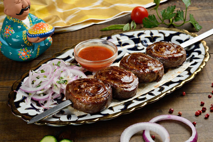 Milliy taomlarimizdan biri bo'lib, asosiy tarkibida go'sht, piyoz va ziravorlar bo'ladi. Tandirda yoki pechda pishiriladi.